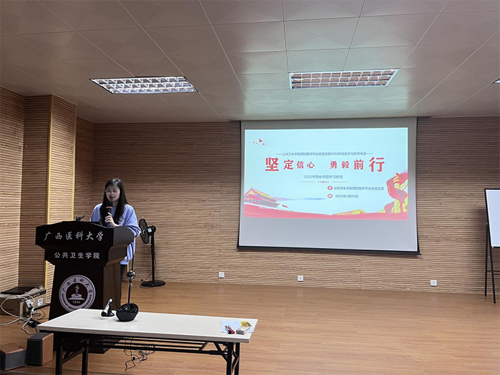 当前位置:学生工作为深入贯彻学习2022年全国“两会”精神,增强党员同志们的使命感和责任感。2022年3月29日晚,水果派解说 预防医学毕业班党支部开展“坚定信心,勇毅前行”主题党日活动。预防医学毕业班党支部正式成员、预备党员、积极分子共55名同志参加,活动由支部书记郑冬婷主持。