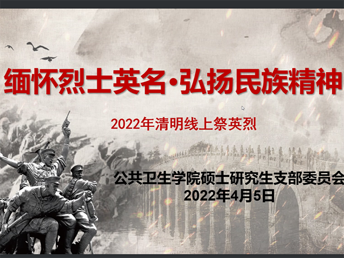 当前位置:学生工作时值一年春草绿,又逢清明祭扫时。为缅怀革命烈士、传承红色基因、弘扬爱国主义精神,2022年4月5日上午,水果派解说 硕士研究生党支部组织开展了清明网上祭英烈活动,通过网络祭扫等新形式表达对革命先烈的敬仰和追思,支部全体党员、入党积极分子参与了本次活动,活动由支部书记李涵同志主持。