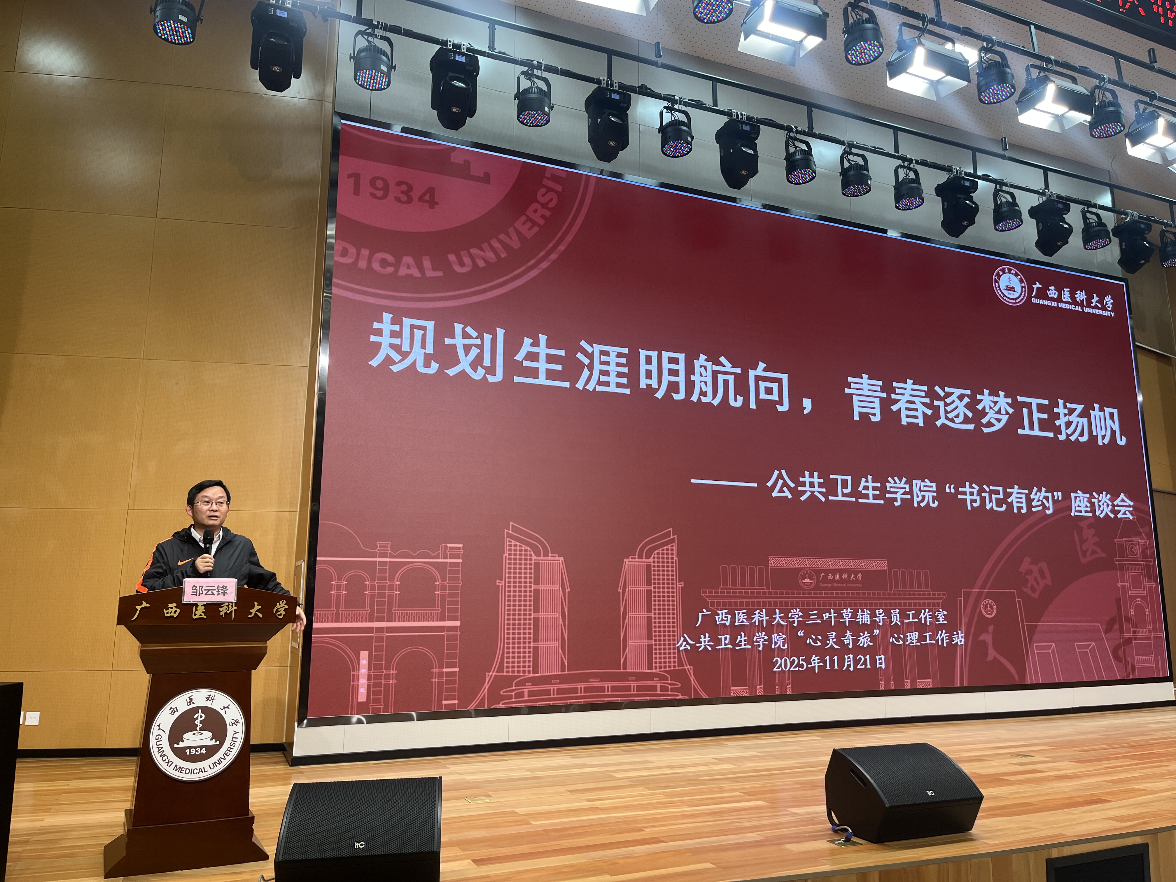 为帮助低年级学生明确学业方向、筑牢成长根基,科学规划大学生涯与未来发展。11月21日,水果派解说 在武鸣图书馆鼎新报告厅开展了以“规划生涯明航向,青春逐梦正扬帆”为主题的“书记有约”座谈会。学院党委书记邹云锋,学工办主任汤丰宁、辅导员庞婷和韦蓓蓓以及大一大二学生代表参加了本次座谈会。