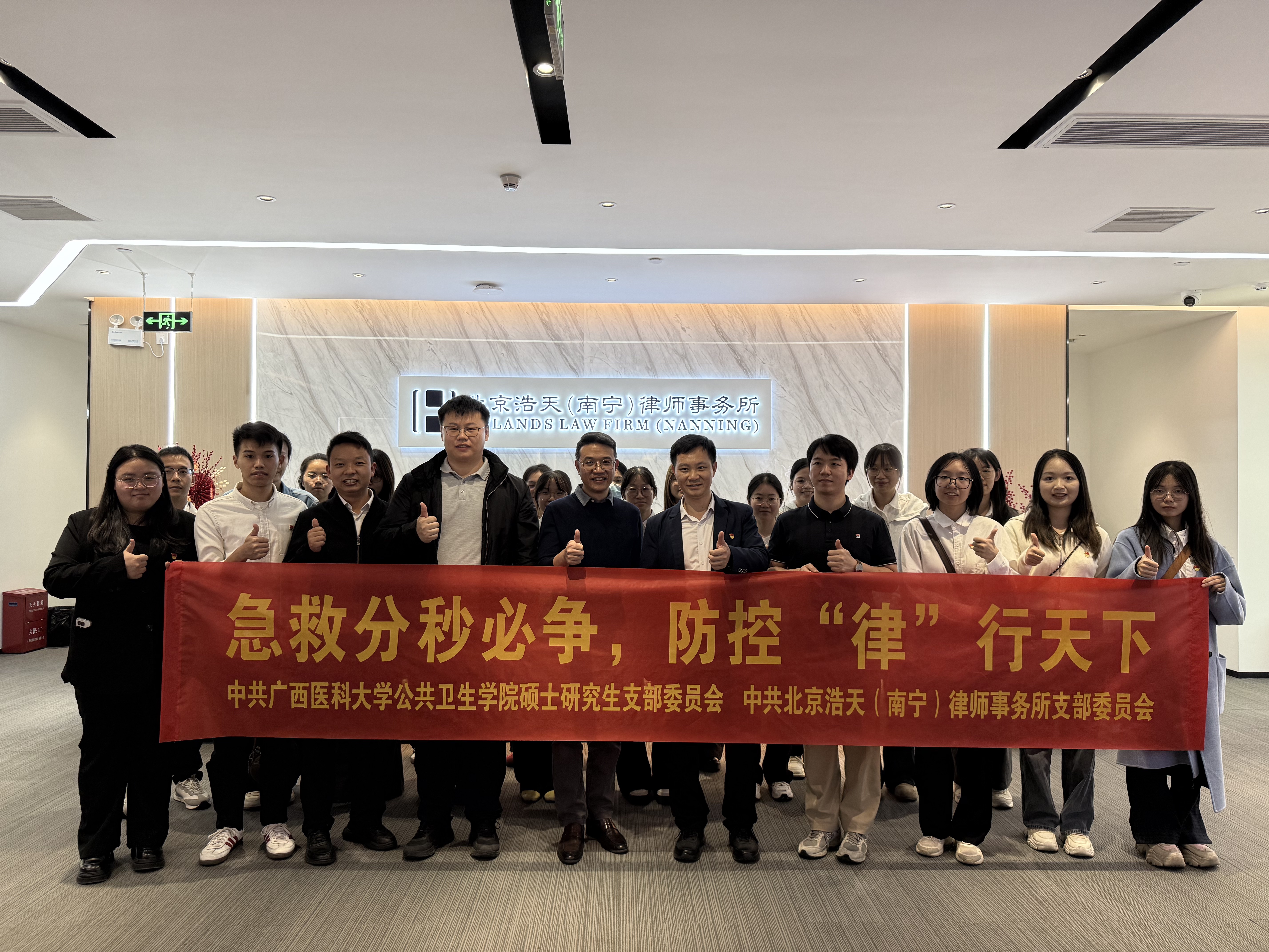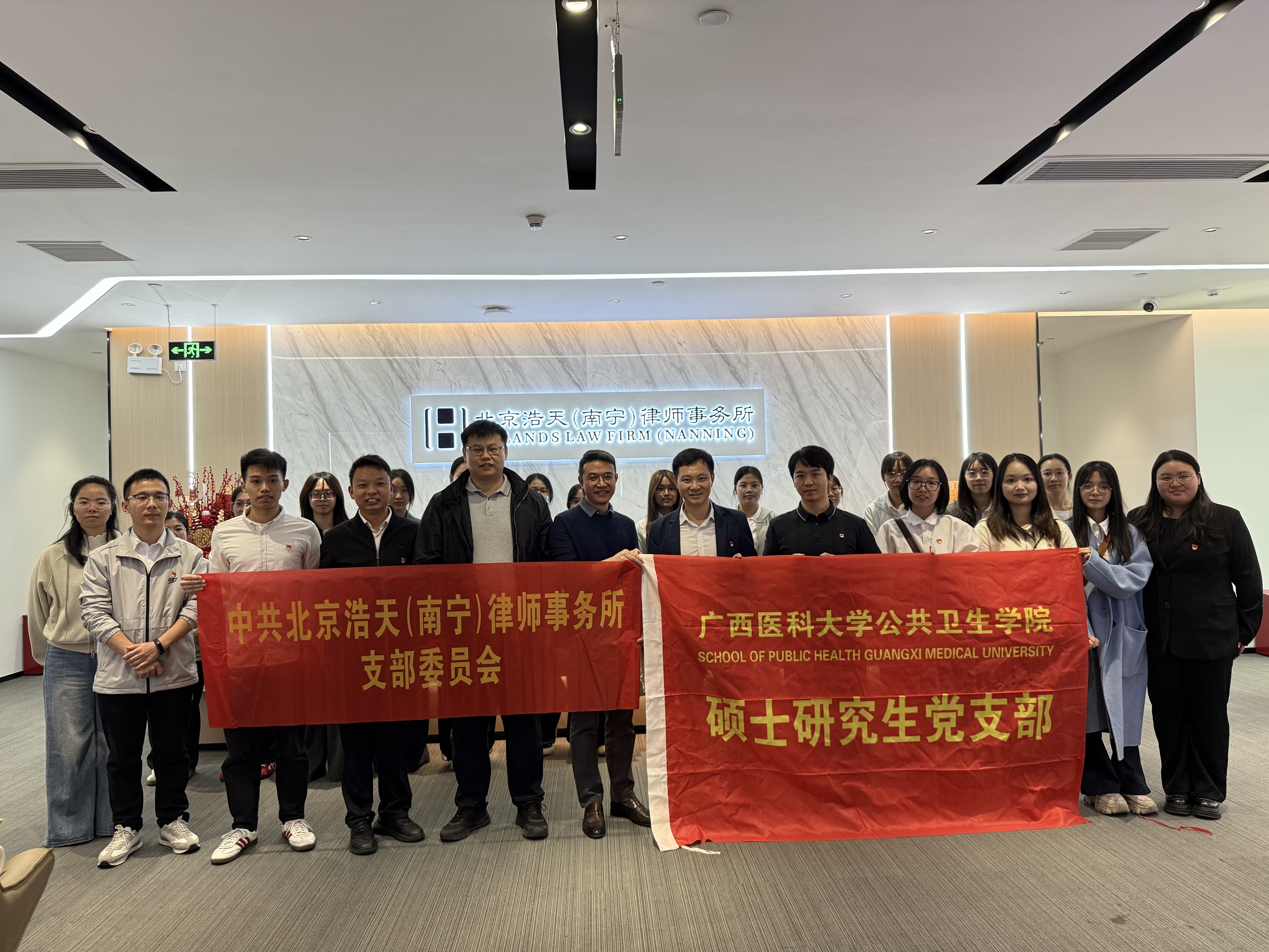 为深入贯彻落实《“健康中国2030”规划纲要》、新时代党的卫生健康工作方针与习近平法治思想,充分发挥公共卫生专业优势与法治保障效能,11月26日下午,水果派解说 硕士研究生党支部、水果派解说 2025级硕士研究生党支部、北京浩天(南宁)律师事务所党支部联合开展共建活动。